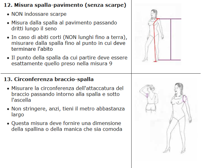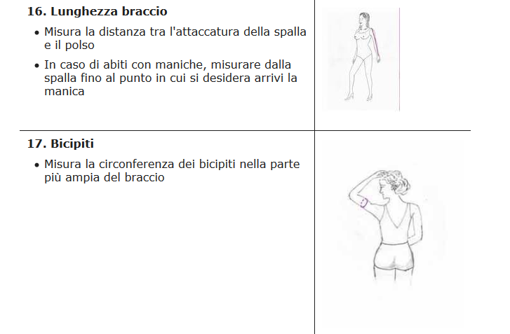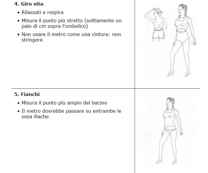 QUESTE SARANNO LE MISURE CHE TI CHIEDEREMO DOPO L'ORDINE